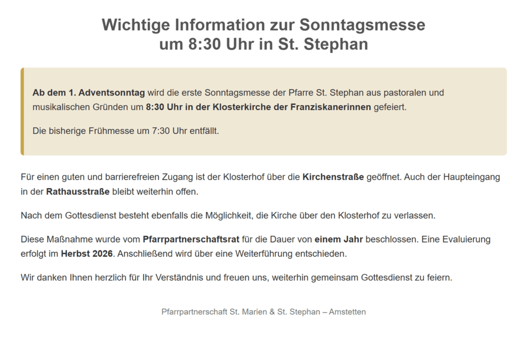 Änderung der Messzeiten in St. Stephan